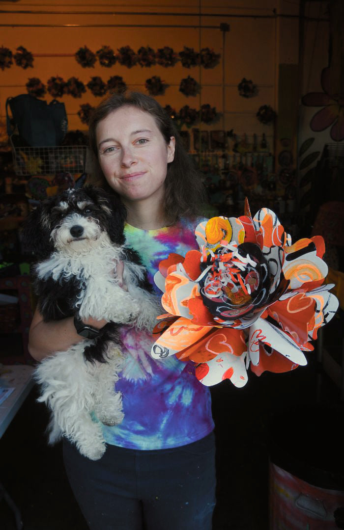 All Passion Flowers are constructed from upcycled aluminum printing plates from local newspapers.