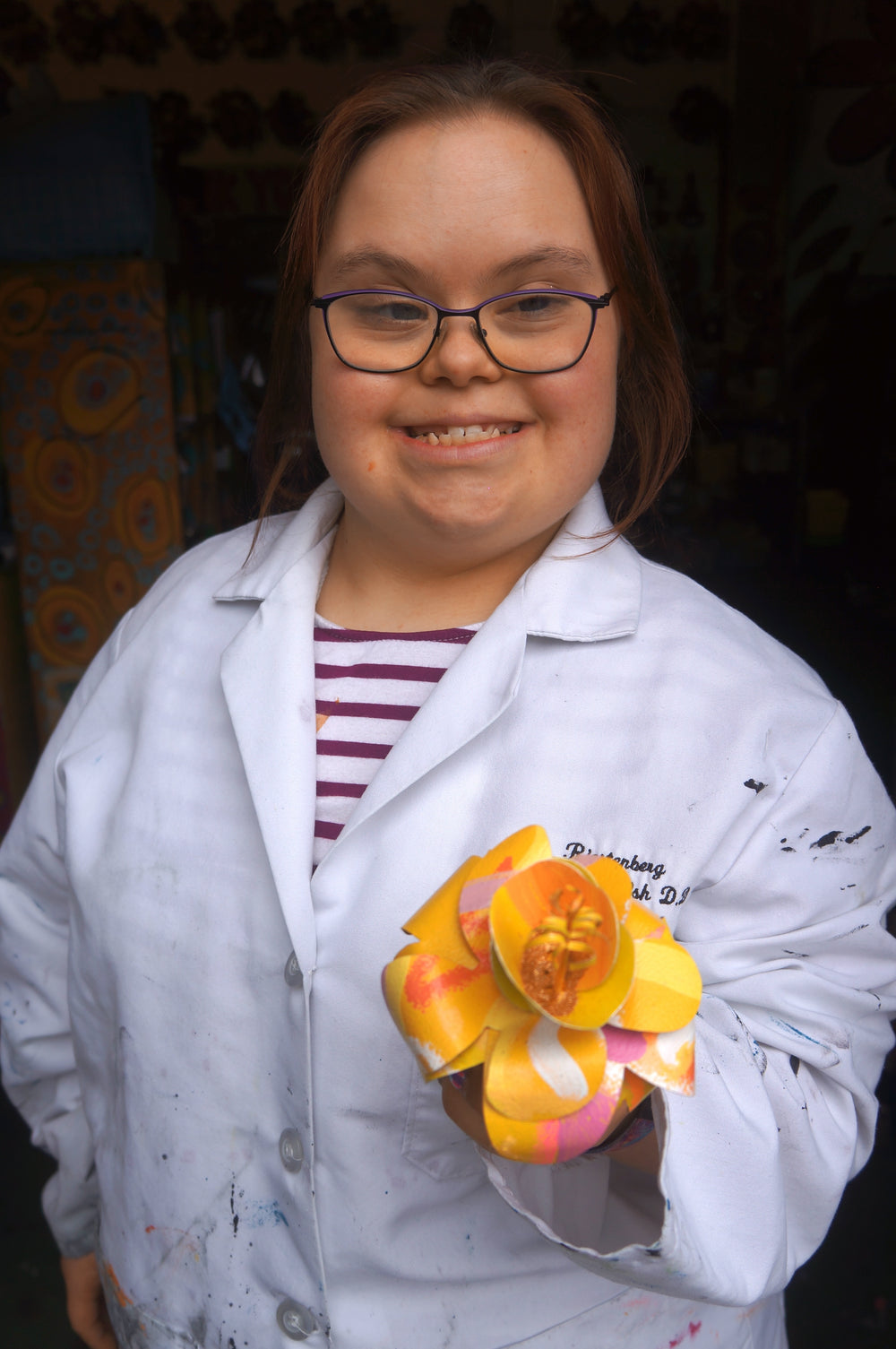 Turn it Gold version of the Mini Deluxe Passion Flower. About 4” in diameter. 20% of the retail sale goes to Turn it Gold to help fight childhood cancer. www.turnitgold.com