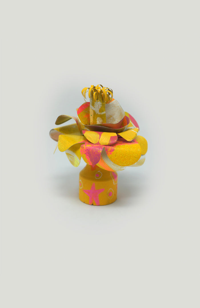 All of the flowers are mounted on a wood block making them perfect for a desk, shelf, or in a display on the wall. Most of the wood blocks are upcycled "bat nubs" from the Louisville Slugger Bat Museum in Louisville, KY.