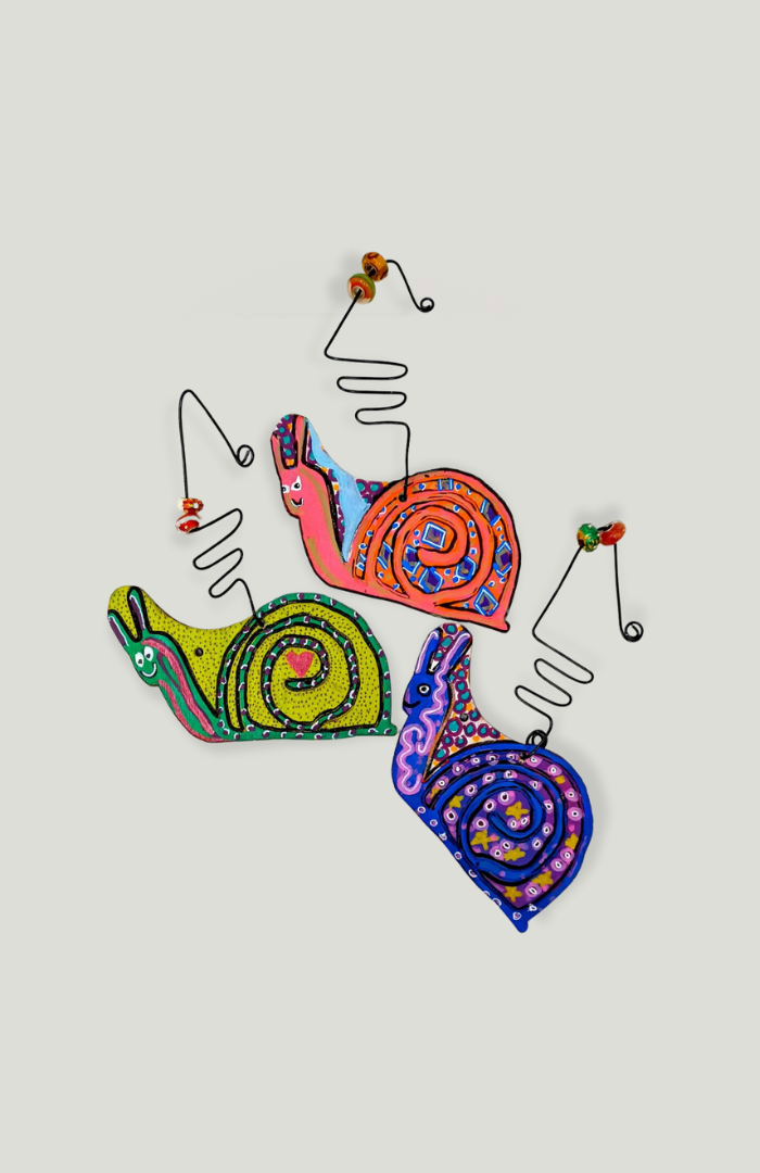 These funky fun snail ornaments are made from upcycled wood and hand-painted by PassionWorks Core Artists! All snails are decorated in the official PassionWorks color palette and each one is one-of-a-kind. Get them while you can-- these limited edition ornaments are the perfect addition to your holiday decor!