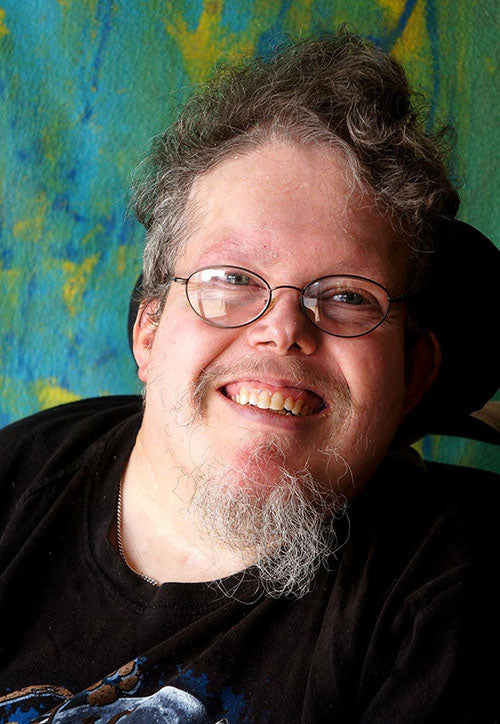 David is one of the original Passion Works Artists! He is best known for his iconic designs like Appliances, Howling Wolf and Grumpy Fish. David takes pride in being the first artist of the crew to work with Patty over 20 years ago. He has been working side-by-side with the love of his life, Sarina during his time at PWS.David's style has developed, evolved, and changed over the years. He enjoys working on all types of surfaces with his new and improved adaptive device created with the OU engineering department. He is open to any new project. We can't forget that David shares another special bond with someone very fuzzy at the studio, Rocco! He loves to spend quality time snuggling with Rocco the studio dog.