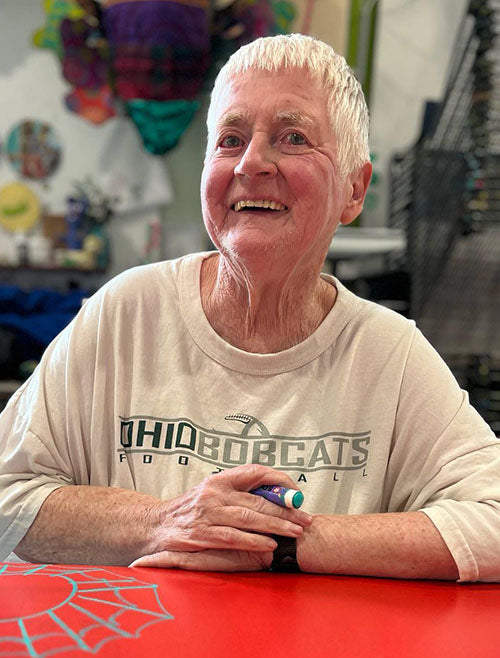 Deb is the #1 Ohio University Bobcats Fan! She won’t let you forget that. Rufus, the mascot, is her main inspiration. She enjoys depicting her favorite sports teams such as the OU Bobcats and the Milwaukee Bucks, in her artwork. She has a distinct style that you can find in the color patterns and textures in her work.