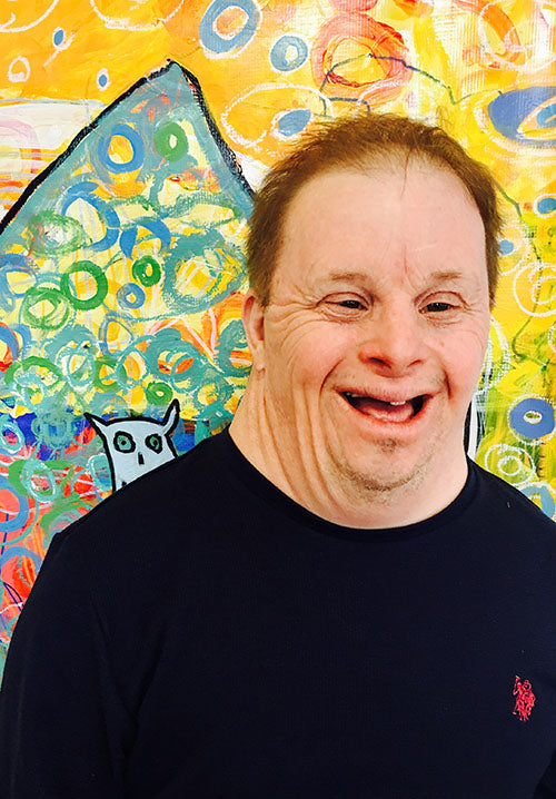Fred also known as “Freddie” has been part of the Passion Works crew since the beginning! He is a fun guy to make with and a very focused artist. He is masterful with spontaneous line works and rich colors! Freddie can bring any painting to life with his abstract line drawings. He is a friend to many and joy to have in the studio!